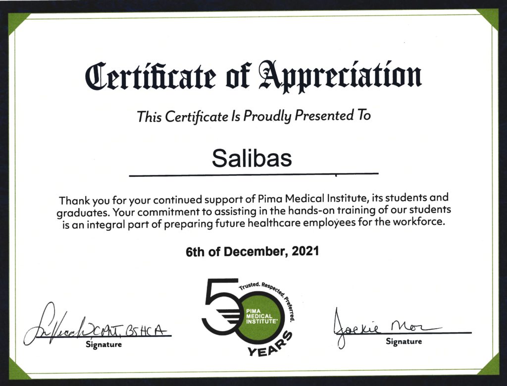 Saliba’s of Tucson was recently honored by the board of directors at the Pima Medical Institute. Saliba’s has regularly offered students internships and has offered many of those students permanent positions with the pharmacy.