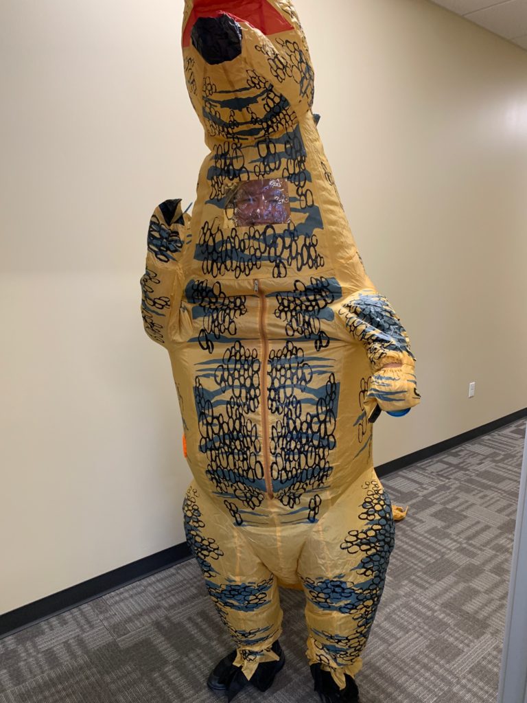 Empowering our managers to plan employee events allows them to foster engagement and fun at work while showing appreciation for our wonderful team members! Our May “Employee Engagement Experience” is a movie-themed month. Already this month, we’ve had a movie playing in our breakroom every Friday with candy, prizes and scavenger hunts. Later this month, we will even have a popcorn truck event. The photos depicted below are of our business intelligence analyst and our fulfillment supervisor contributing to the mood of Jurassic Park week.