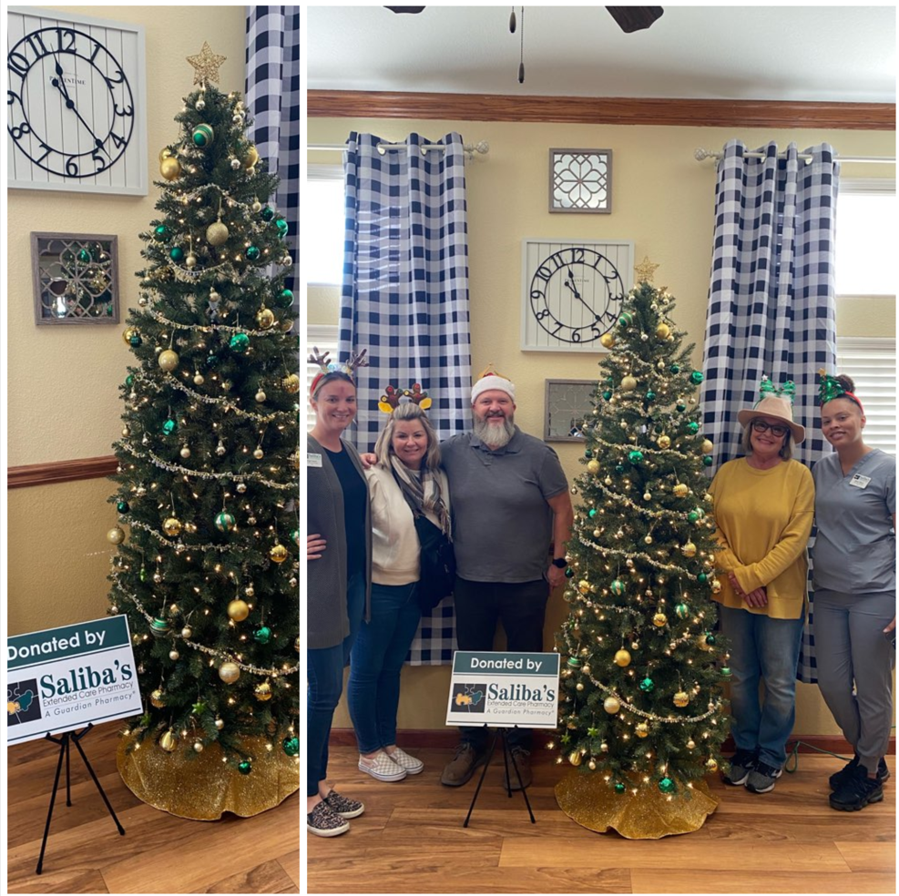As part of an annual tradition, the nurse account managers at Saliba’s Extended Care decorated and donated a tree to one of our communities, Brookdale Chandler Ray Road. This year’s tree is adorned with green and gold decorations as a tribute to the Saliba’s pharmacy colors. The trees are donated as part of the “Festival of the Pines” for the residents to enjoy during the holiday season.
