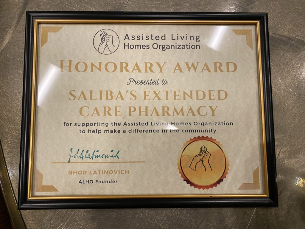 Saliba’s Extended Care Pharmacy was recognized at ALHO (Assisted Living Homes Organization) Black Tie Masquerade Event on December 11, 2021. The event included dinner, dancing, door prizes, a fashion and comedy show and much more.
