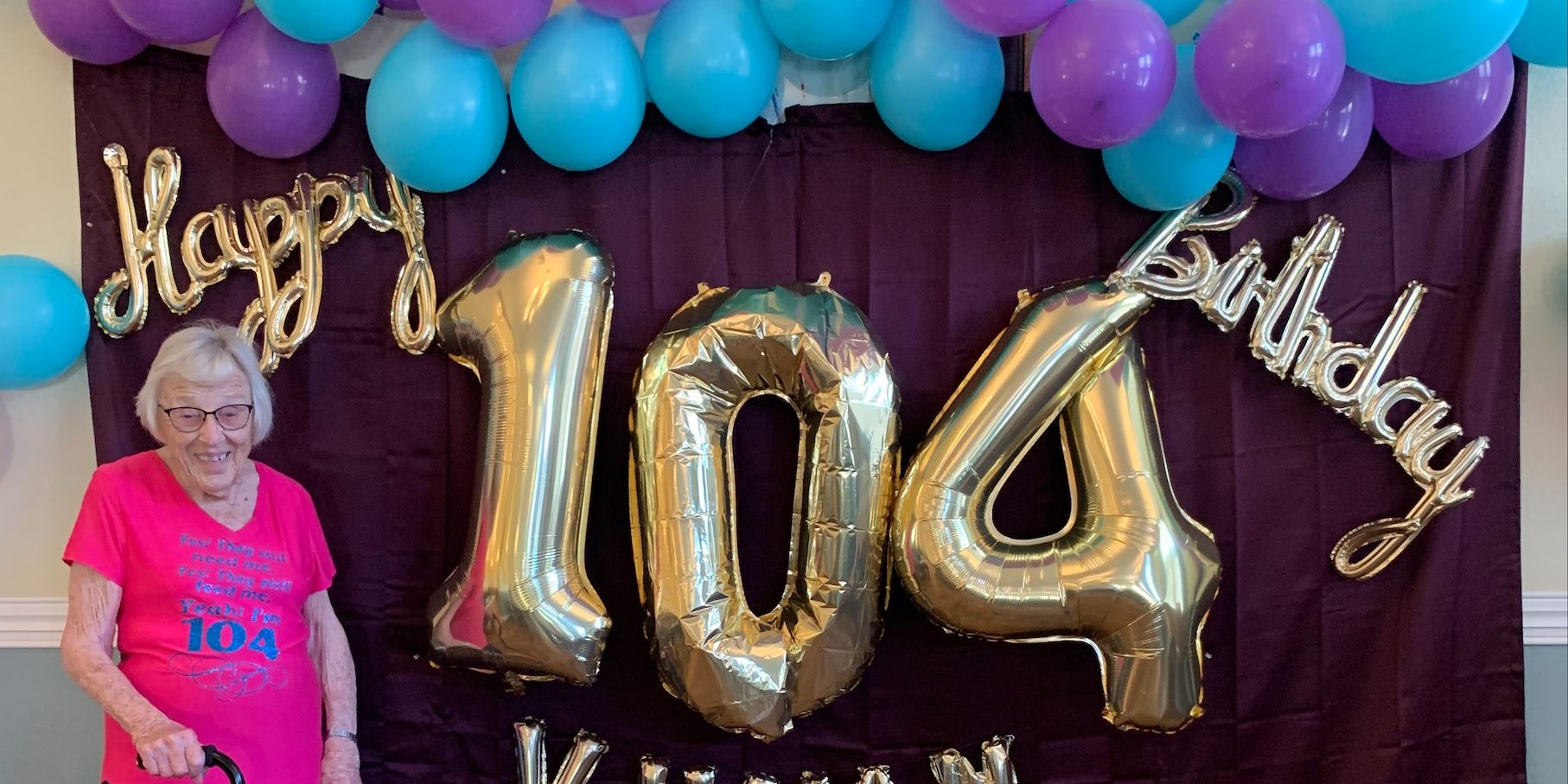 Lora Reynolds, a nurse account manager at Saliba’s Pharmacy, attended the 104th birthday celebration for one of our community’s residents, Vivian Brikferd, on August 31. The event occurred at Broadway Mesa Village with Fox News and other media present for this milestone celebration. Vivian is an extremely independent, active senior who is ‘sharp as a tack,’ according to Lora. Her spryness is attributed to the daily walks she takes to visit her many friends at the community. Vivian provided each guest with a candy bar personalized with her photo, a thank you for coming to her party and the Lord’s Prayer affixed to the back.