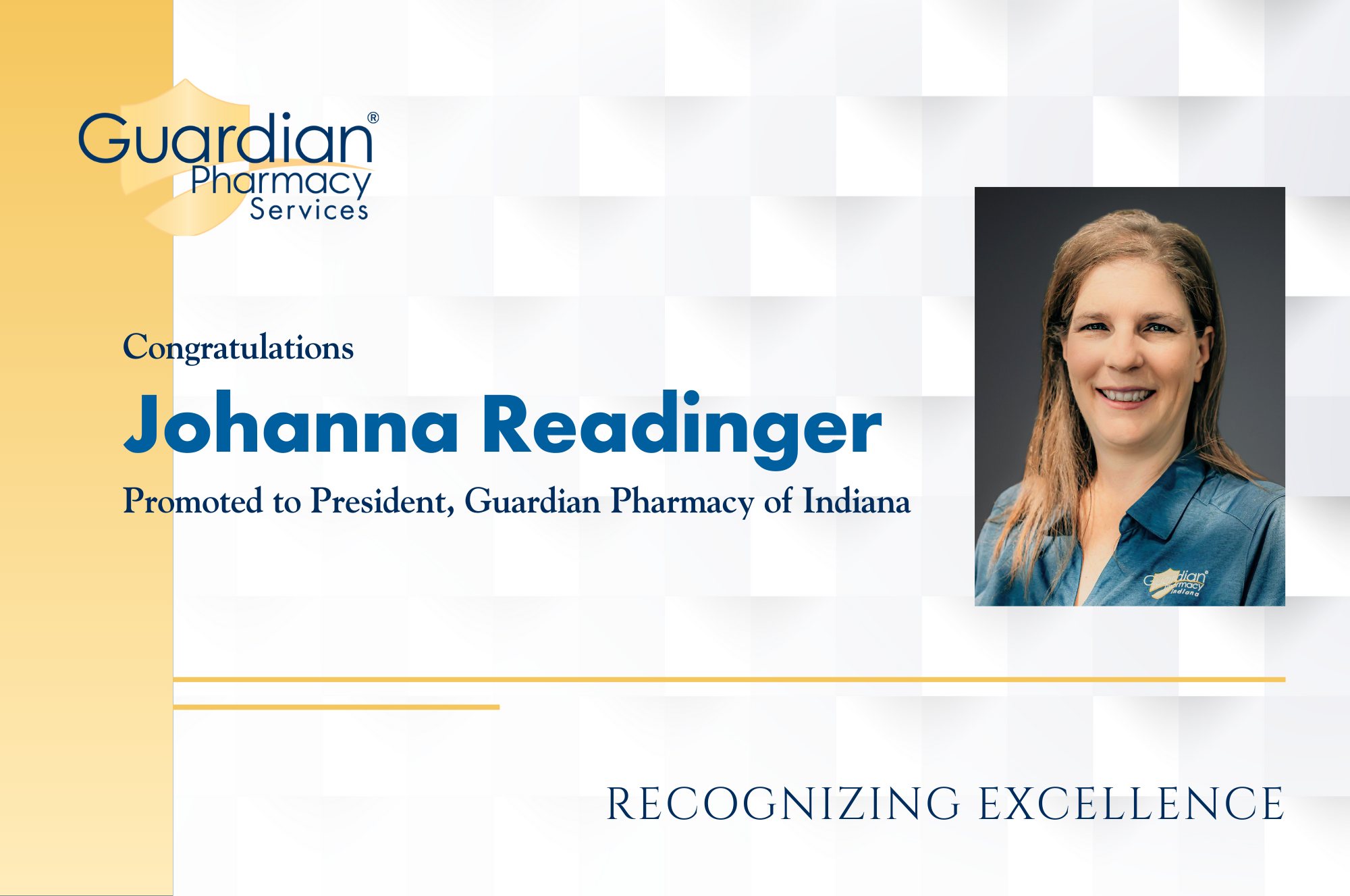 Guardian Pharmacy of Indiana, part of Guardian Pharmacy Services—one of the nation’s largest and most innovative long-term care (LTC) pharmacy companies—has announced the promotion of Johanna Readinger, R.Ph., Pharm.D., to pharmacy president.