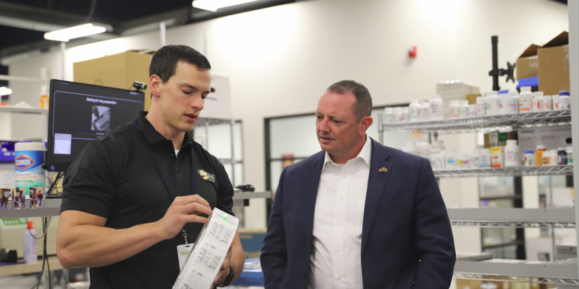 Congressman Burlison’s walk-through, led by Seth Connelly, Pharm.D., director of operations, and Michael Counts, Pharm.D., president, included the pharmacy’s customer care center and fulfillment operations. The visit also included a discussion of critical issues facing LTC pharmacies and policies championed by the Senior Care Pharmacy Coalition (SCPC).